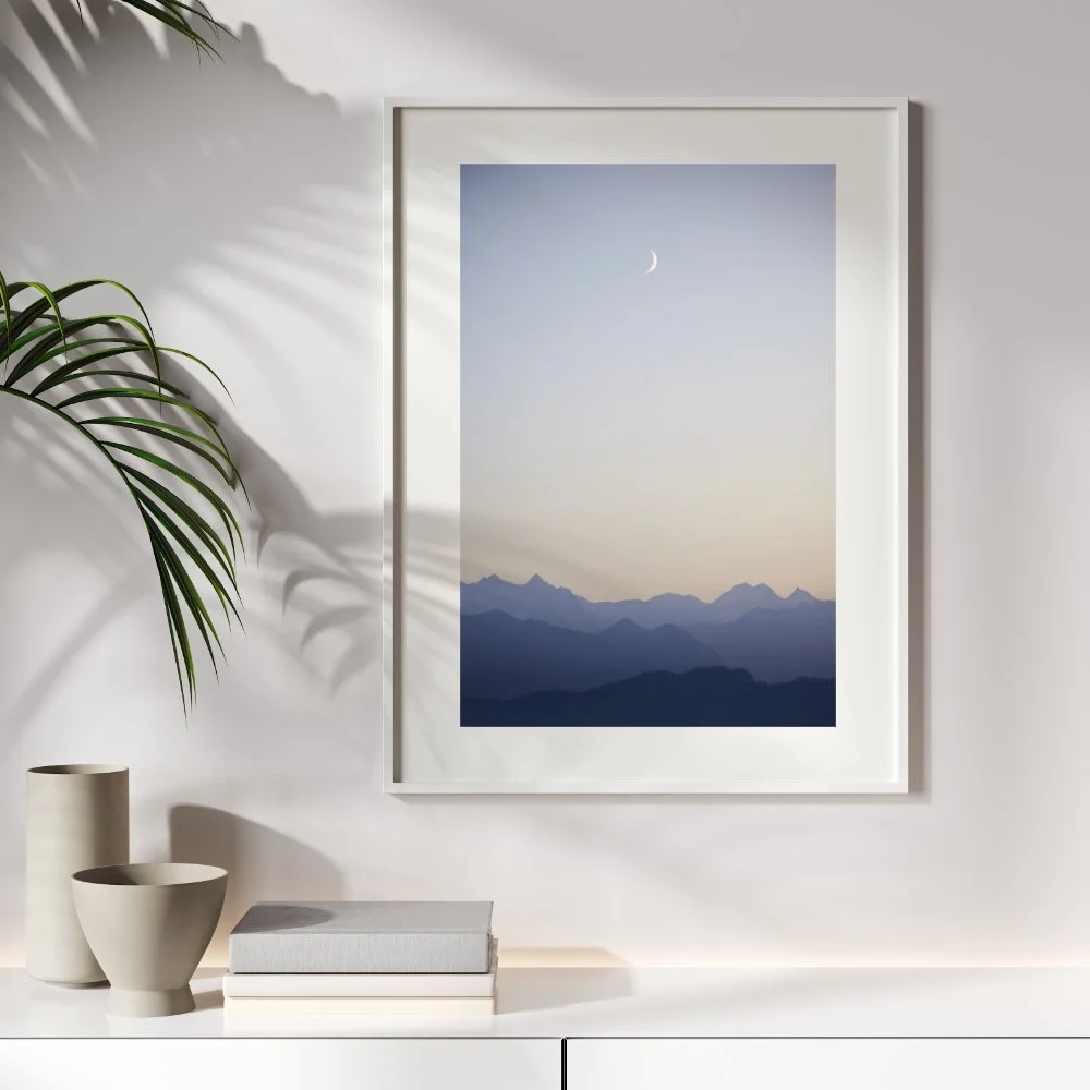 "Fading Light: Serene Peaks" is the perfect way to add a touch of calm to your home. The soft colors and clean design fit beautifully with modern spaces, creating a peaceful and stylish look. Whether it’s your living room, bedroom, or office, this artwork brings the beauty of nature indoors and makes your space feel special.